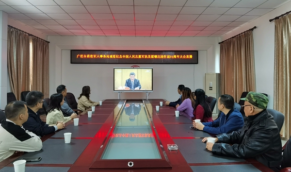 四川新闻网消息(廖文英)“雄赳赳,气昂昂,跨过鸭绿江……”一首歌,传唱了一代又一代,雄壮的旋律,凝结了一个国家的集体记忆。今年是中国人民志愿军抗美援朝出国作战70周年,10月23日上午,广汉市退役军人事务局组织干部职工集体观看《纪念中国人民志愿军抗美援朝出国作战70周年大会》直播,激励大家学习伟大的抗美援朝精神,脚踏实地、矢志奋斗,在新时代新征程中不断夺取新的更大胜利。