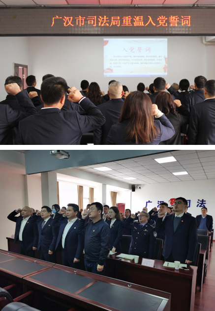 四川新闻网消息(赵君)根据政法队伍教育整顿的统一要求,为增强全体党员的责任感和使命感,提升组织的凝聚力、向心力和战斗力,3月22日,广汉市司法局组织全体党员开展“重温入党誓词,坚定理想信念”主题党日活动。