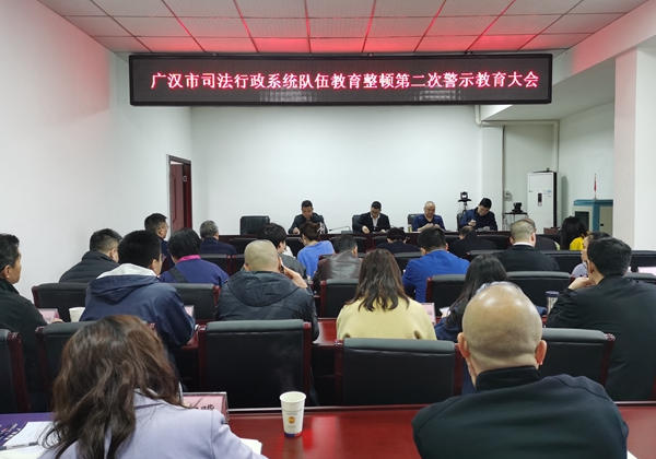 四川新闻网消息(刘中倩)近日,政法队伍教育整顿进入查纠整改环节,为进一步严明整顿要求、严肃查纠纪律,广汉市司法局于4月15日召开队伍教育整顿第二次警示教育大会。全体干部职工40人参会。