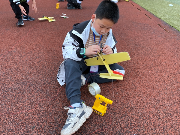 “打磨手掷滑翔机一定要有耐心,不然就飞不远了”一名参加手掷滑翔机直线距离飞行赛项目选手说到。这个项目也是唯一一项需要在现场进行制作的项目,考验参赛选手的临场应变能力和制作能力。在水火箭发射打靶赛比赛区域内,不时传来“砰砰砰”的声音,紧接着就是看到参赛选手奔向自己发射的水火箭掉落点,查看与靶心距离。