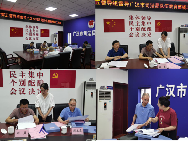 指导组一行通过现场查阅资料、听取汇报、座谈交流等方式,详细了解广汉市司法局队伍教育整顿第三轮自查情况,检查自查自纠、为民办实事、理论学习、建章立制等情况。