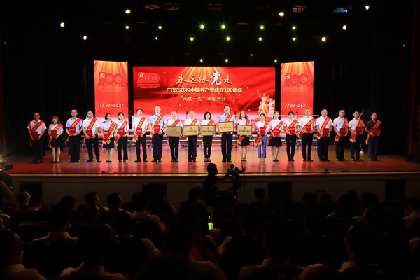 该系列活动首先对广汉市优秀共产党员、优秀党务工作者、先进基层党组织进行了表彰。广汉市委书记王锐向受到表彰的“两优一先”集体和个人表示热烈祝贺,向全市1205个基层党组织和2.96万名共产党员致以节日的问候!他指出,100年来,中国共产党带领中国人民跨过一道又一道沟坎、取得一个又一个胜利、创造一个又一个奇迹,实现了民族独立、国家富强、人民幸福,中华民族迎来了从站起来、富起来到强起来的伟大飞跃。广汉也是红色热土,广汉也有动人篇章。从1928年2月,老一辈共产党人在广汉成立汉州特别支部,到1949年12月28日广汉县人民政府成立,群众的生活、城市的面貌发生了翻天覆地的变化,谱写了一曲从落后走向进步、从封闭走向开放、从贫穷走向繁荣的华彩乐章!