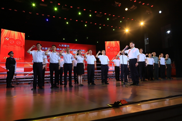 最后,广汉市委、市人大、市政府、市政协党员领导带领在场全体党员一起重温入党誓词、重忆入党初心。大家齐声唱响《没有共产党就没有新中国》,雄浑的歌声响彻全场,挥舞的旗帜将气氛推向了最高潮,要把最饱满的激情、最深情的赞歌献给党和祖国,坚定“永远跟党走”!