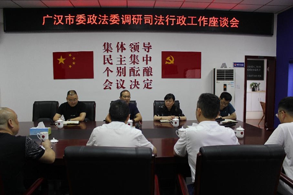 四川新闻网消息 7月5日下午,广汉市委常委、政法委书记石磊,政法委常务副书记许海燕,政法委副书记孙强,政法委副书记廖乐泉一行,到广汉市司法局调研司法行政工作。