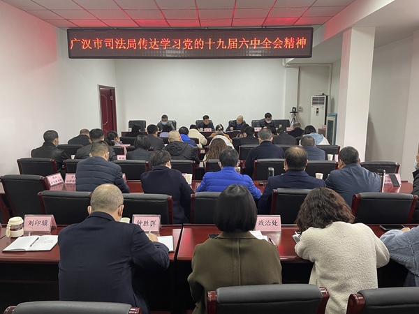 四川新闻网消息 11月15日,广汉市司法局召开干部大会传达学习党的十九届六中全会精神,全体干部职工、各律师事务所主任、公证处主任等参加。