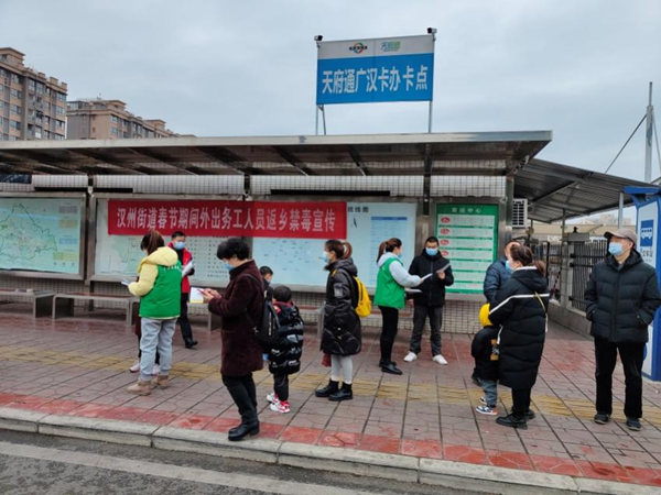 广汉市汉州街道开展春节期间外出务工人员返乡禁毒宣传活动