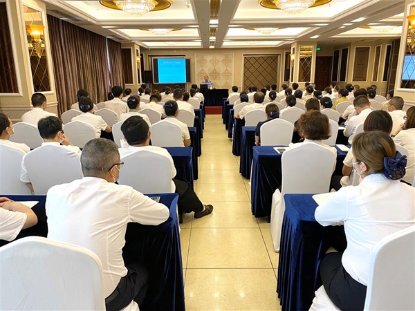 培训会上,德阳市旌阳区市场监督管理局餐饮监管股负责人对蜀徽酒店餐饮服务工作人员进行了《食品安全法》及实施条例、《餐饮服务食品安全操作规范》、GB31654-2021《食品安全国家标准 餐饮服务通用卫生规范》等法律法规的宣传讲解,并结合餐饮单位食品安全管理制度、人员健康管理制度及卫生要求、食品原辅料采购进货查验索证索票、食品加工过程控制、餐饮具清洗消毒、食物中毒及处置、重大活动餐饮食品安全要点以及投诉举报处置等重点内容进行了深入解读。
