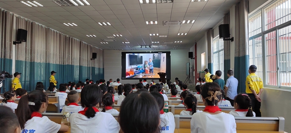 学生视频作品展示及模拟演练。在广汉市三水小学“子曰”演播大厅,各级领导和100名少年急救官观看学生录制的优秀视频,3位学生还上台演示被利器割伤的处置方法、烫伤的急救方法、手臂骨折如何急救等。四川公羊会教员向大家讲解心脏骤停如何急救的相关知识,并现场开展模拟教学,指导学生正确的心肺复苏方法。汇报活动结束后,四川省新联会副会长魏心田为广汉市三水小学授予“少年急救官”试点学校。四川省委统战部一级巡视员魏在田对此次活动成功举办给予充分肯定,希望社会各界再接再厉,持续稳步抓好这项工作。