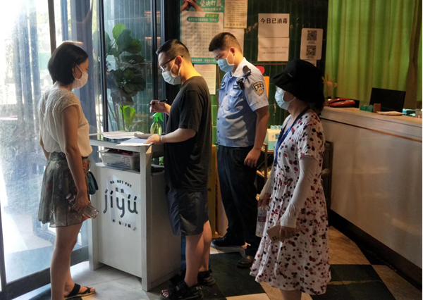 四川新闻网消息 商场超市、酒店宾馆等服务业重点场所人流量密集、人与物进出频次高,是疫情防控的重点场所、重要环节,但部分服务业重点场所心存侥幸、思想麻痹,落实疫情防控措施变通走样,进入人员戴口罩、测温、亮码和扫码通行的“刚性要求”落实不严格。8月11日下午,旌阳区服务业专班督导三组对辖区内东湖街道的酒店、餐饮、茶楼、洗浴等多家场所开展疫情防控督导,督促经营者严格履行防控主体责任,同时对从业人员“三天三检”核酸检测落实情况开展检查。
