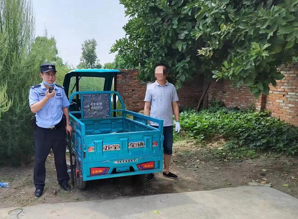 近日,广汉市公安局高坪派出所接报警称:“高坪镇成德大道路口有人电瓶车被盗。”接到报警后,高坪派出所民警立即赶到现场。经了解,被盗车主杨某为道路绿化工人,案发时正在成德大道修剪绿化,上午10时17分发现电瓶车被盗,车上装有GPS定位。