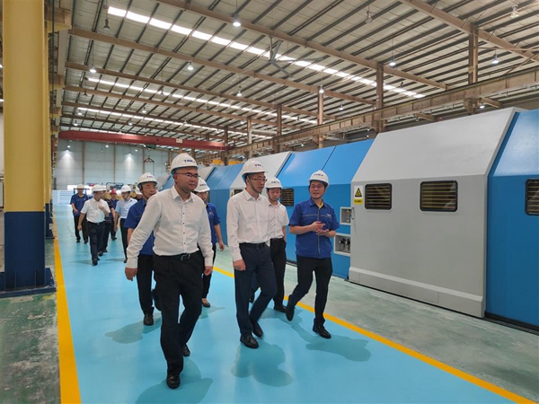 在特变电工(德阳)电缆股份有限公司,罗文全先后深入力缆车间和特变电工西南5G装备电缆科技产业园节能环保电线数字化车间,听取产业发展布局汇报,了解企业生产经营情况。