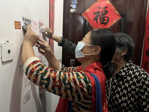 小区内公共区域张贴的小广告不仅严重影响了小区美观,⽽且部门小广告中还包含虚假信息,因此,铲除小广告势在必行。单元门、墙壁上、住户家门上的小广告十分顽固,清理难度大,志愿者们相互配合,利用铲子、喷漆、喷壶等工具对⼩区内四处张贴的小广告一张一张仔细地铲除,进行全面清理。