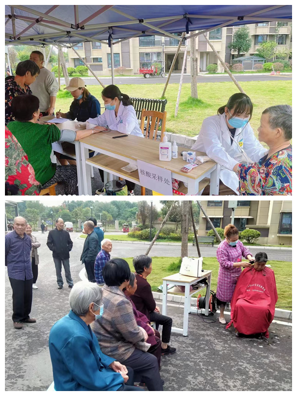 在福馨苑小区为189位老年人进行了血压、血糖测量等免费体检服务,同时福馨苑物管委还邀请了理发师到活动现场为65位老年人进行了免费理发。