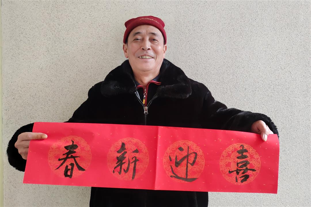 “这位老师免费给我们写字儿!大家都来领喽!”社区居民冉文友高兴地说。据光华社区居委会副主任谭翊芸介绍,上午社区开展慰问活动,给困难户和残疾人送去新春祝福和礼物,还有现写的“热乎”的春联和“福”字。