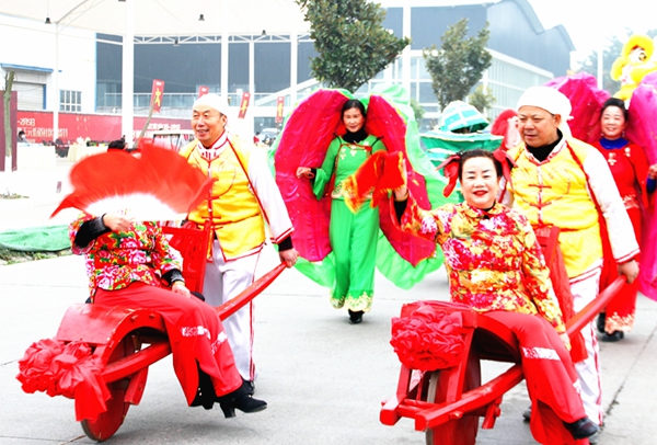 活动现场,居民们不仅观看了精彩的民俗节目,彩莲船、腰鼓巡游、非遗蛾蛾灯、贝壳灯、鸡公车表演庙会巡游也让现场群众感受到了中国传统文化和德阳特色。