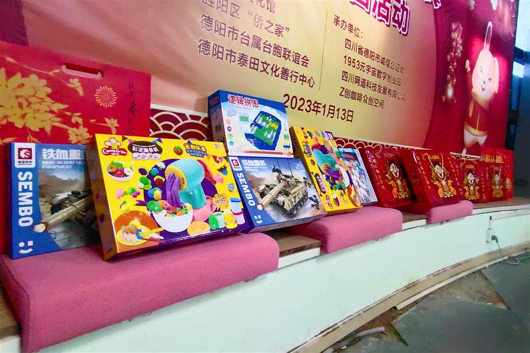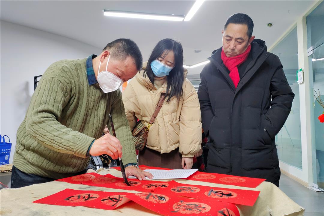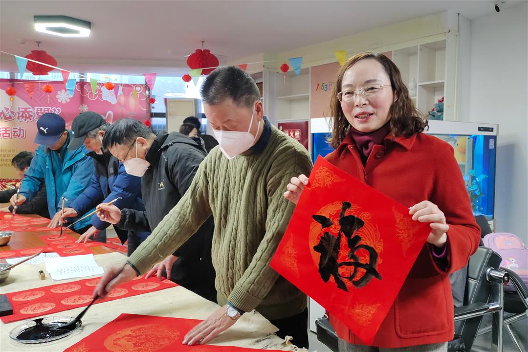 孩子们在家长的陪伴下成长,为了回馈“特殊家庭”的不易,活动也为这些家庭准备了礼物,一张张福字、一副副对联,来自德阳市文化馆、德阳市台属台胞联谊会的书法老师们在桌案前挥洒自如,将一句句饱含祝福的语句“镌刻”在红纸上,期盼这些家庭拿着这些春联、福字贴在家门口,来年,又是一个顺利好年。