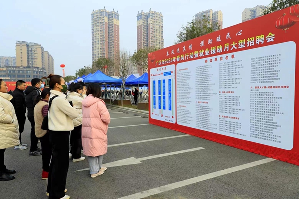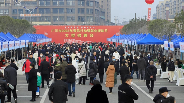 四川新闻网消息 为推动成德眉资同城化发展,优化营商环境,助力乡村振兴,促进高质量充分就业,2023年2月3日上午,以“春风送真情、援助暖民心”为主题的“广汉市2023年春风行动暨就业援助月大型招聘会”,在广汉市金雁汽车公园隆重举行。提供总岗位数近8000个,1万余名求职者入场求职,达成聘用意向2500余人。