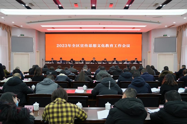 会议强调,要强化理论武装,通过抓牢中心组专题学习、基层理论宣讲、理论研究阐释,服务全区经济社会发展。要壮大主流舆论,大力营造深入学习贯彻党的二十大精神的浓厚氛围;创建全省县级融媒体中心示范点,有序高效推进社会氛围营造工作,常态化抓好新闻发言人、新闻通讯员队伍建设;聚焦“致力共同富裕、持续巩固百强”,全方位讲好旌阳故事、多角度传播旌阳声音。要丰润道德滋养,以社会主义核心价值观引领育人新风;坚持典型示范,持续加强文明培育;构建具有旌阳特色的新时代文明实践体系,大力推进乡村“复兴少年宫”建设,打造志愿服务特色品牌,提高整体创建水平。要持续推进“文化立区”,大力发展先进文化,实施文化惠民工程、文明培育工程,不断提升旌阳文化软实力和文化影响力。要全面落实意识形态工作责任制,树牢底线思维,全面落实意识形态工作责任制,打好意识形态主动仗,守好意识形态主阵地,牢牢掌握意识形态工作的领导权、主导权、话语权。要加强党对宣传思想工作的全面领导,旗帜鲜明坚持党管宣传、党管意识形态,做到因势而谋、应势而动、顺势而为。要在区委的坚强领导下,攻坚克难、砥砺前行,抢抓机遇、乘势而上,充分发挥宣传思想工作凝聚力量、引领群众的关键作用,在新征程上奋力开创宣传思想工作新局面,为全面建设社会主义现代化旌阳作出新的更大贡献。
