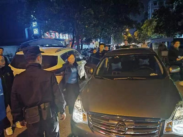 平安社区联勤联动队员在辖区夜间巡逻时,反应迅速,及时处置了因两辆私家车发生刮擦,造成交通道路堵塞的问题,消除了道路交通安全隐患,确保了辖区路面交通安全有序。