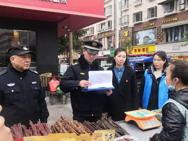 文庙社区联勤联动工作队对辖区流动商贩进行整治,进一步打造整洁、有序的辖区环境。