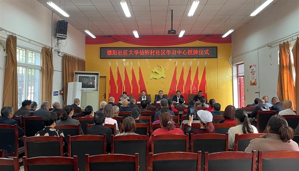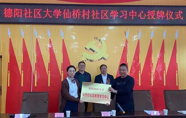 仪式上,德阳社区大学相关负责人介绍了社区教育学习中心的职能职责,并为黄许镇仙桥村社区教育学习中心授牌。
