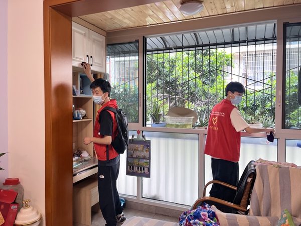 5月19日,大塘社区联合中国民用航空飞行学院志愿者队伍开展入户家庭清扫、清洁服务。