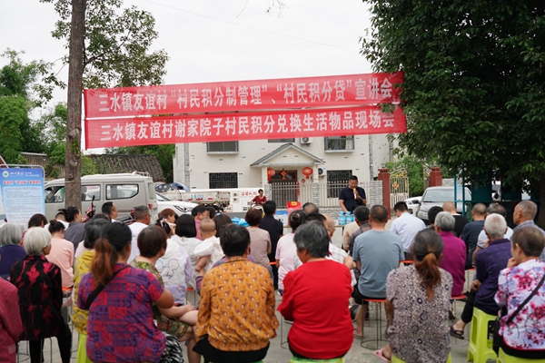 今年年初,三水镇首家积分超市在友谊村正式开张,通过推行积分奖励模式,将积分兑换商品与志愿服务、村级事务相结合,引领带动群众积极参与移风易俗、环境卫生整治等活动。因地制宜制定了通俗易懂、简便易行、有规可循的“正负面清单”,充分发挥了村民在乡村治理中的主体作用,增强了村民的获得感和幸福感。