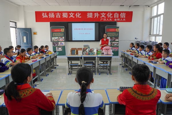 四川新闻网消息 近日,广汉市人大常委会、金阳县人大常委会、广汉市唯爱社会服务中心在金阳县城关小学联合举办了以“弘扬古蜀文化 提升文化自信”为主题的三星堆文化进校园儿童关爱活动。续写了广汉对口帮扶金阳县人大篇章。