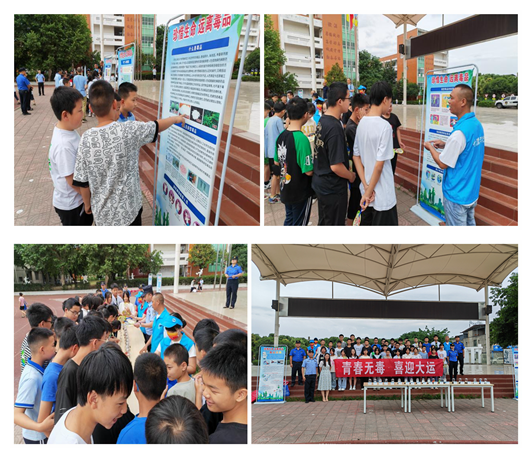 活动现场,派出所民警结合生动个案为全校师生讲解什么是毒品、毒品种类、青少年吸食毒品的诱因分析及怎样才能做到远离毒品等相关知识,工作人员结合毒品模型及禁毒展板向在场学生讲解毒品对个人、家庭、社会带来的巨大危害,号召广大学生要珍爱生命,远离毒品,做禁毒理念的传播者,以“小手拉大手”发动更多的人参与禁毒斗争,携手并进,共建和谐美好家园。