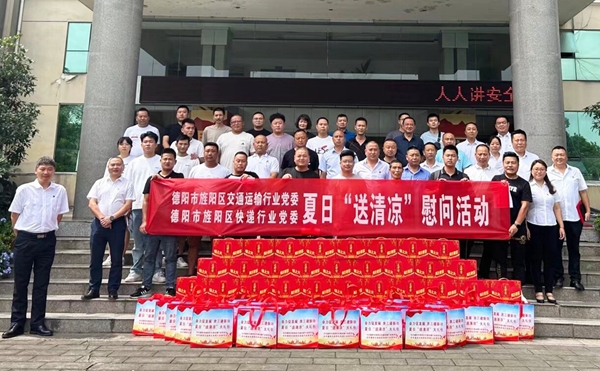 四川新闻网消息 近日,旌阳区交通运输行业党委、快递行业党委组织开展了夏日“送清凉”慰问活动,为全力奋战在交通一线的货车司机和快递人员送去关爱和“清凉”。