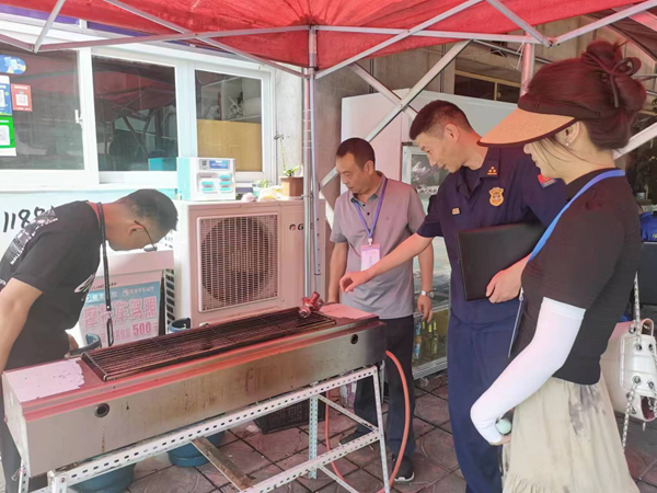 “你这个液化石油气瓶身锈蚀严重,要立即联系供气单位进行更换!”“你们存放的液化气太多了,总量要控制在60kg以内。”“这个燃气软管老化严重,有漏气风险,要马上进行更换哈。”“这个软管太长了,标准是与灶具连接软管不能超过2m。”在东湖街道,由区应急局带队的督导组采取“四不两直、逐街逐店”的方式深入各烧烤摊、小吃摊、火锅店、大排档等商户,对商家用气安全隐患对标对表进行排查,针对排查的问题,悉心与商家进行沟通交流。