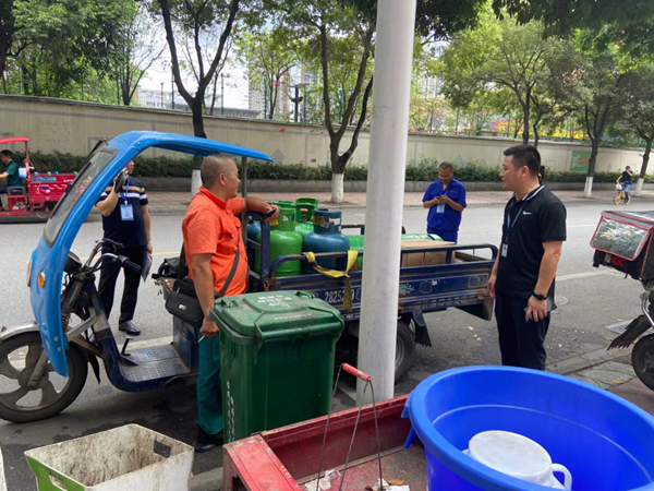 “你们知道液化气泄漏要如何应急处置吗?”督导组开展隐患排查的同时考验商家应急处置能力水平,并就燃气泄漏应急处置方式对部分商家进行现场培训。