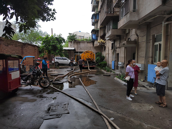 香山巷社区为了解决困扰紫金苑居民和商户的排污管道堵塞问题,通过社区工作人员、网格员,不断地深入走访所有商铺和住宅,广泛征求居民和商户对排污管道清淤工作处理意见,并于今年6月4日在小区内组织召开业主大会,最终通过了解决管道堵塞的方案:由紫金苑小区所有业主和商户平摊排污管道清淤费用,社区负责协调清淤工作。