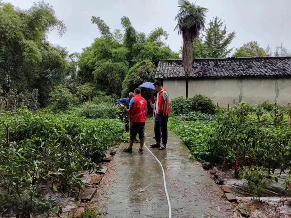 大雨中,社工和村干部深入山洪灾害隐患点、电站、支渠、主要排洪沟等重点区域,对辖区空巢老人等特殊群体进行暴雨受灾情况重点排查和走访。