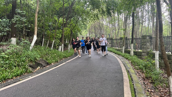 虽然天气炎热,但大家热情不减,迈着矫健的步伐,精神抖擞地走在公园的林荫道上。健走过程中,大家呼吸着“天然氧吧”的新鲜空气,享受着户外健走的乐趣。到达终点后,大家还开展了跳绳、羽毛球等趣味活动。参加项目的居民们大方展示运动风采,现场热闹非凡,加油声此起彼伏,每个人脸上都洋溢着开心的笑容。