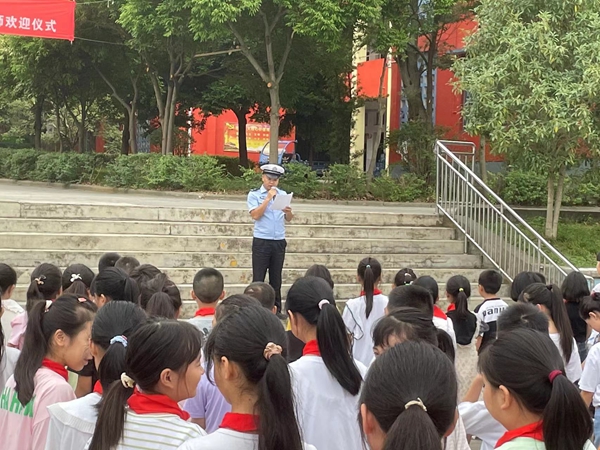 四川新闻网消息 为全面做好秋季开学道路交通安全管理工作,进一步提高中小学生的交通安全意识和自我保护防范能力,从源头上减少和预防交通事故的发生。近日,德阳市公安局旌阳区分局交警大队结合辖区交管工作实际,组织民警深入辖区德阳九中、博爱小学、黄许职中等学校,以新颖有趣的形式组织开展“开学第一课”交通安全宣传教育活动。