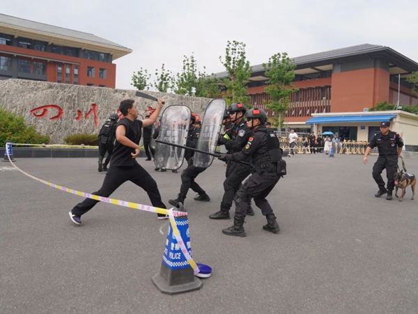 四川新闻网消息 为进一步提升校园安全防范意识和应对突发事件处置能力,增强应对突发事件处置的针对性、有效性,进一步维护校园安全,9月6日、7日,广汉公安特(巡)警大队分别联合广汉四小、广汉中学开展2023年“护校安园”反恐防暴联动演练。