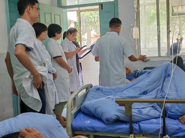 义诊结束后,成都医学院第一附属医院专家团队前往三水镇卫生院住院部进行了教学查房,详细了解患者的病史和治疗情况,仔细检查了患者的身体状况,并与卫生院医师一起讨论,对患者的治疗方案提出指导性意见。