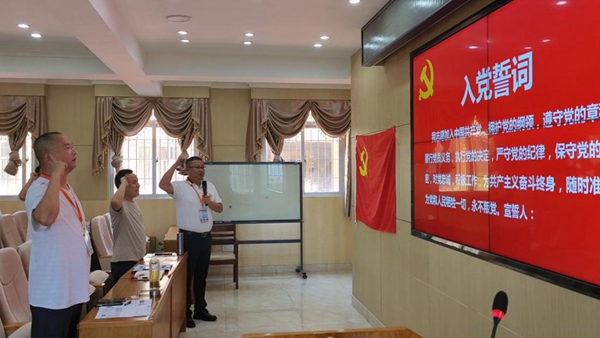 四川新闻网消息 面向党旗,党员们庄严肃立,紧握右拳,党支部书记曾鹏带领党员们重温入党誓词,再次感悟初心使命,坚定理想信念。这是近日广汉市卫生健康人才能力提升专题培训班临时党支部全体党员集体宣誓的一幕。