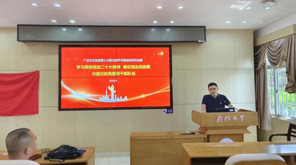 广汉市卫健局党委委员、副局长舒运佳为学员们作了专题党课,要求党员干部们越是面临形势复杂、挑战严峻情况下,越要坚定信念,不断提升自身素质,敢于担当,从容应对各种风险和挑战。