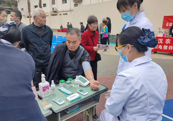 表演结束后,广汉市澄铭医院、广汉市中山医院的医生们现场为老人们提供了免费的健康体检、健康咨询;中国人寿保险、广汉农商银行的工作人员则为老人们讲起了金融政策知识以及反诈骗科普,有效提高了老人们的健康意识、防骗意识。