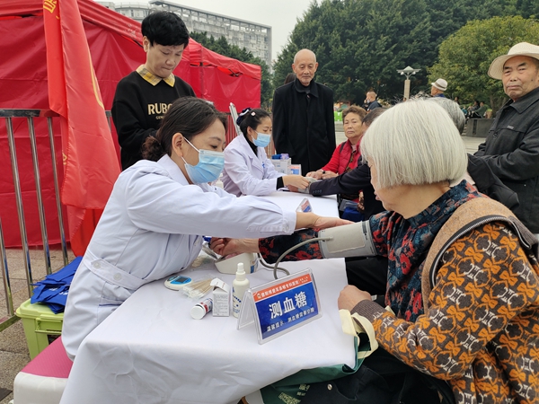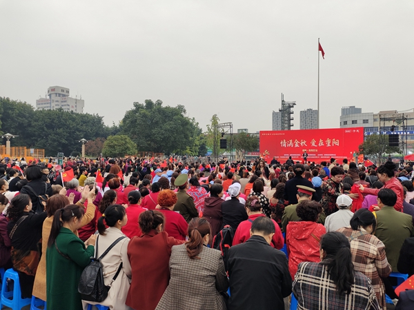 四川新闻网消息 岁岁重阳,今又重阳。10月23日,旌阳街道花园巷社区携手孝当先四川德阳店、旌阳区老年大学等爱心单位在文庙广场举办“情满金秋·爱在重阳”文艺汇演,并开展义诊义检,喜乐、健康共庆重阳佳节,弘扬尊老、爱老、助老传统美德。