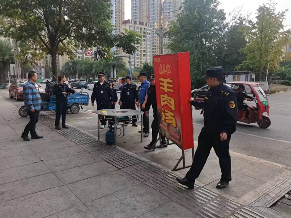 治理行动以东莞路、广大路、凤凰大道等协作共管区域秩序乱象为重点,着力对商铺跨门槛经营、游商占道、广告牌乱设、“牛皮癣”乱贴、垃圾杂物乱堆等进行执法检查和专项治理,同时严格巡查两地交叉地段在建工地,督促规范施工、开启喷淋设施、冲洗进出车辆车轮、加强裸土覆盖,全面落实降尘防尘措施。行动期间,共计规范跨门槛经营68家次,劝离游商占道45人次,清理落地牌、横幅、杂物等36处,督促在建工地落实降尘防尘措施4处。