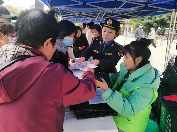 三星太极广场活动现场,广汉市综合执法局城管队员和垃圾分类工作人员积极向市民发放《宪法》《四川省城乡环境综合治理条例》《德阳市城市管理条例》《广汉市生活垃圾分类管理暂行办法》等法律法规宣传资料和垃圾分类桶、垃圾袋等礼品,主动接受群众法律咨询,详尽解释涉及群众生产生活和群众关心关注的城市管理问题相关法律规定,同时深入开展垃圾分类宣传、讲解垃圾分类常识。活动累计发放法律法规读本320册、宣传彩页240份、垃圾分类桶48组、垃圾袋130把,接受市民群众咨询150人次,既发挥了法治正能量,又引导大家主动参与垃圾分类,获得群众一致好评。