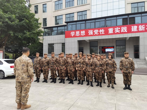 广汉市综合行政执法局党组成员和环卫所全体党员身着迷彩服,来到广汉市武装部体验军营生活。全体人员首先参观了广汉市人武部军史馆,全面了解了人民武装部的光辉发展历程,尤其是连续五年被四川省军区评为“践行强军目标先进人武部”的殊荣。