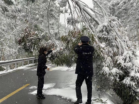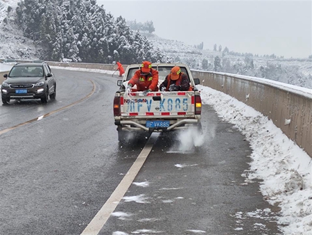 四川新闻网消息(曾妮 刘煜豪 记者 陈斯) 1月24日上午,旌阳区因持续降雪,导致G350国道新中镇龙居村路段约1公里路面出现积雪、暗冰,严重影响通行安全。旌阳区交通局以“雪”为令,迅速采取行动,加强部门联动,多措并举除隐患,确保道路交通安全畅通。