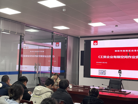 四川新闻网消息 为进一步贯彻落实《工贸企业有限空间作业安全规定》,加强工贸企业有限空间作业安全管理,强化风险管控措施,提升企业有限空间安全监管能力水平,确保企业有效使用有限空间在线检测预警系统,提升在线监测预警系统使用率,筑牢有限空间作业安全风险防线,1月24日,旌阳区应急局召开旌阳区工贸行业有限空间作业安全管理培训会,六十余名企业负责人及安全管理人员参加会议。