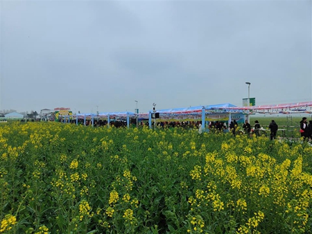 近年来,德新镇依托旌阳粮油现代农业园区,坚持同步推进高标准农田建设和美丽宜居乡村建设,在做好粮油优势产业的基础上,持续挖掘整合大田风光、川西林盘等元素,不断丰富拓展园区业态,实现园区“景区化”。每逢初春时节,万亩油菜花竞相开放,勾勒出一幅美轮美奂的乡村画卷,吸引众多游客前来赏花踏青。