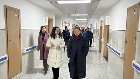 熊英实地查看了旌阳区第三人民医院承担的省社区医养结合服务能力提升项目建设情况,对项目区域的功能布局、设施设备配备、环境打造等方面给予了充分肯定。“一是要加快项目建设进度,要建成一个高标准的医养结合服务阵地,为区域老年人提供高质量医养融合服务。二是要加强人员配置,外引内培多举措提高医养结合病区医务人员和护理人员的服务能力。三是要借鉴学习和自我创新相结合,优化制度流程,美化康养环境,打造区域医养融合服务标杆。”熊英表示。