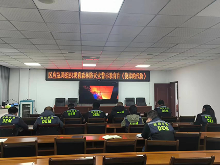 加强警示教育。区级相关部门组织干部职工观看森林防灭火警示教育片——《侥幸的代价》,还原了一系列森林火灾的发生、扑救过程,揭示森林火灾将造成的巨大损失和人为原因的森林火灾面临的处罚,通过警示教育片的学习,提高干部职工的防火责任意识。